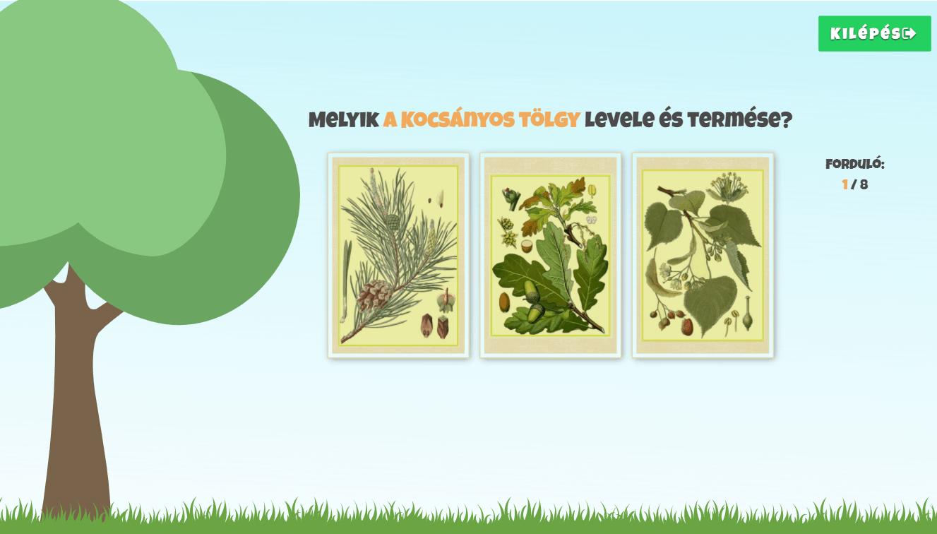 A hallott madárcsicsergés alapján kell kiválasztani három madár képe közül, azt amelyiknek a hangját halljuk.